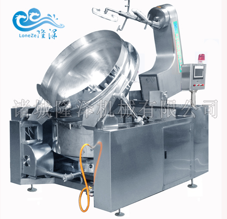 而且火力大,攪拌均勻不糊鍋,全自動控制,出料方便,絕對是炒制醬料火鍋底料的優質設備。 隆澤機械醬料炒鍋加熱功率15-45kw,電機功率2.2+1.5kw,外形尺寸:2600*1900*1850 該系列產品采用一次沖壓成型的半球形不銹鋼鍋體,本產品凡接觸食品部分皆為不銹鋼制造并進行拋光處理,符合《中華人民共和國食品衛生法》的要求,具有造型美觀、設計合理、結構緊湊、安裝方便、操作簡單、便于維修。 隆澤機械專業生產醬料炒鍋 全自動醬料炒鍋 辣椒醬炒鍋,攪拌方式是模擬人工翻炒的行星式攪拌,解決了人工炒制辣椒醬的艱辛加上效率低的問題!